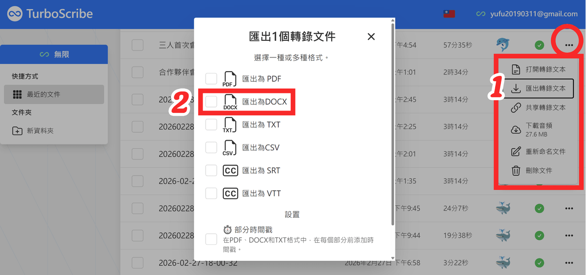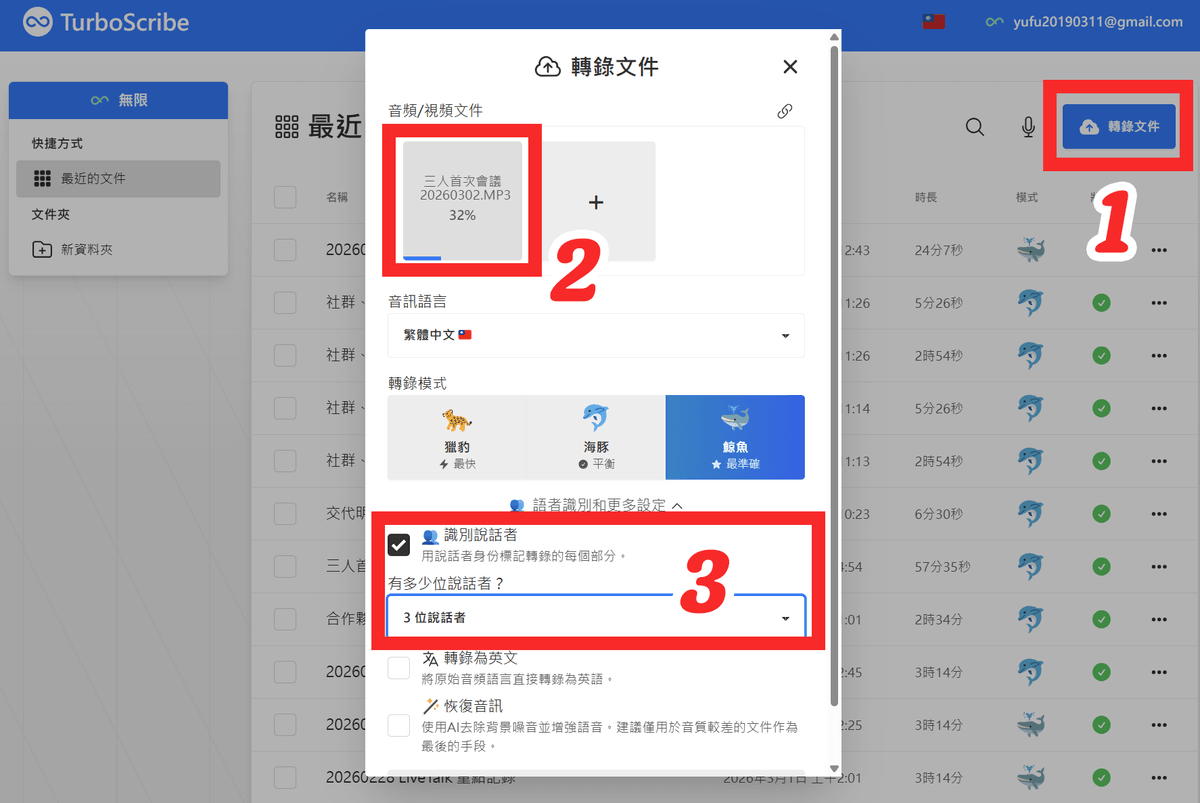 1. 前提是,你在會議中有「錄音」,才能將「音檔」上傳到TurboScribe進行轉錄成文字