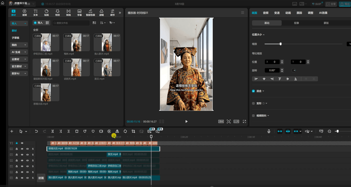 4. 剪映:把各個角色的影片「重疊」再來進行剪輯